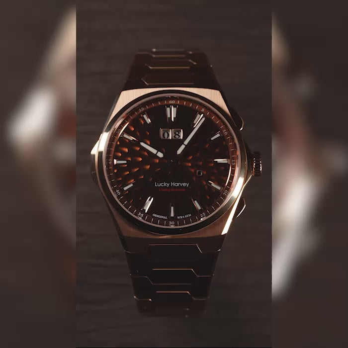 The Lucky Harvey 2025 Hammer Dimpled Dial Chiming Watch is a striking blend of texture, sound, and precision, released in a limited edition of 300 pieces. Its dial surface uses a hammered (dimpled) finish inspired by ancient metalwork techniques — each subtle indentation catches light differently, giving depth and a living quality to the face of the watch.