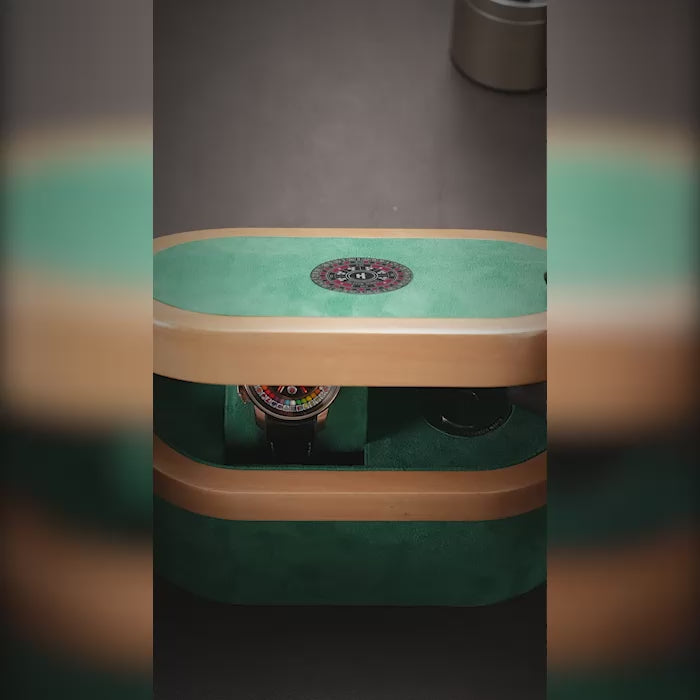 Inspired by classic casino slot machines, the dial reimagines timekeeping as an interactive experience. The slot-style display introduces movement and intrigue, making the watch a striking conversation piece.